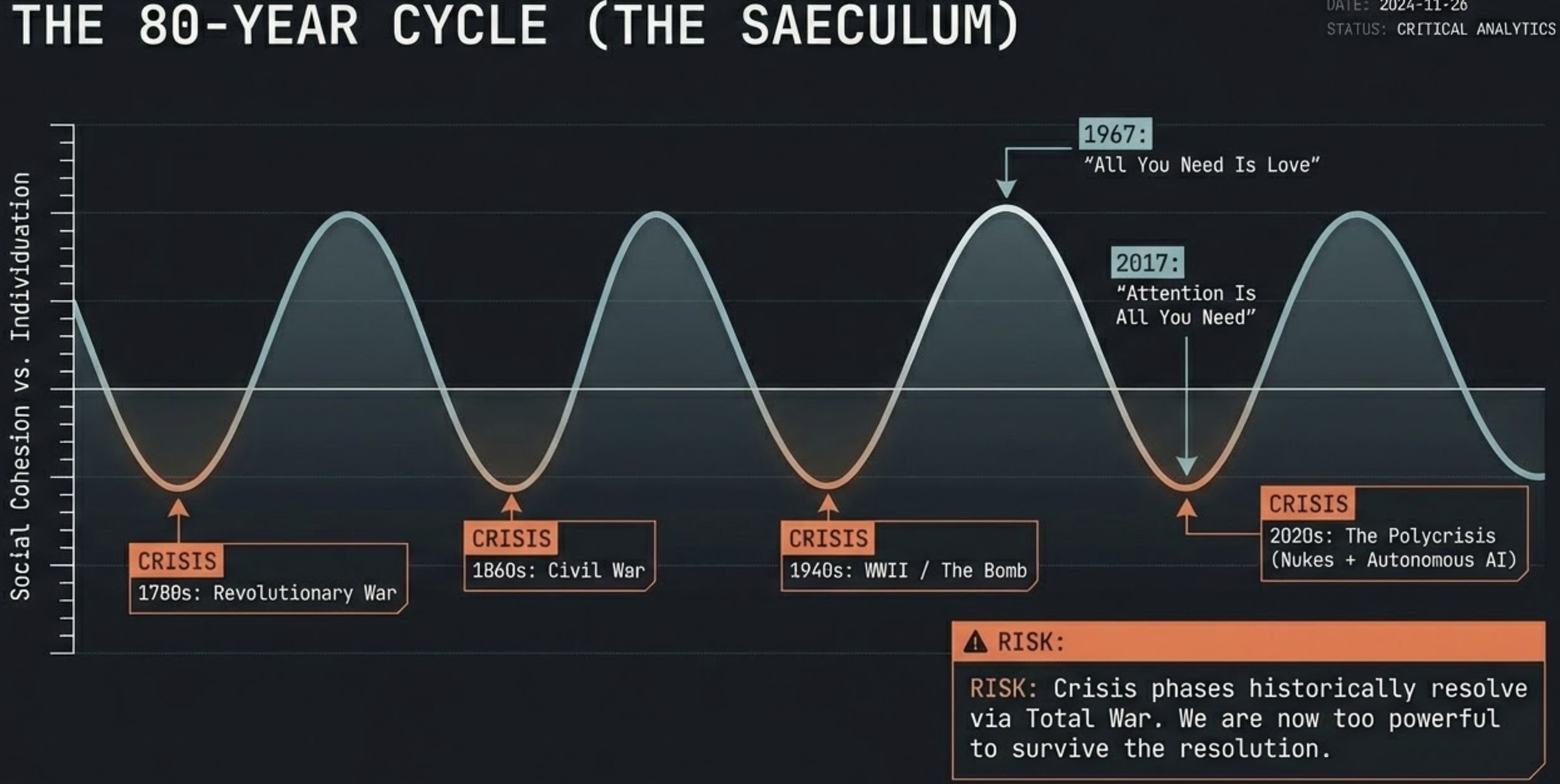 This is the root vulnerability behind humanity's repetitive historical cycle, resulting in a crisis period every 80–100 years.